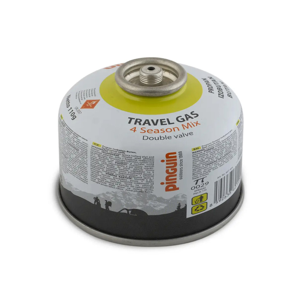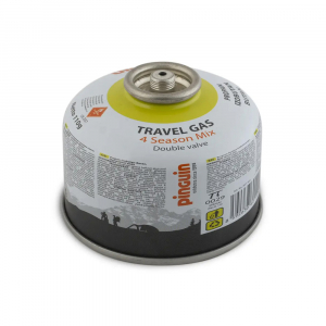 Pinguin Travel Gas - газовий балон із сумішшю пропан-бутан-ізобутан, яка добре працює цілий рік. Цей тип різьбових балонів сумісний з більшістю газових пальників, у тому числі, які кріпляться безпосередньо на балон - широкий діаметр забезпечує стійкість. Однак якщо ви плануєте використовувати посуд великого розміру, краще використовувати спеціальну підставку Pinguin Cartrige stand Black або Pinguin Cartrige stand Green, яка збільшує стабільну стійкість.