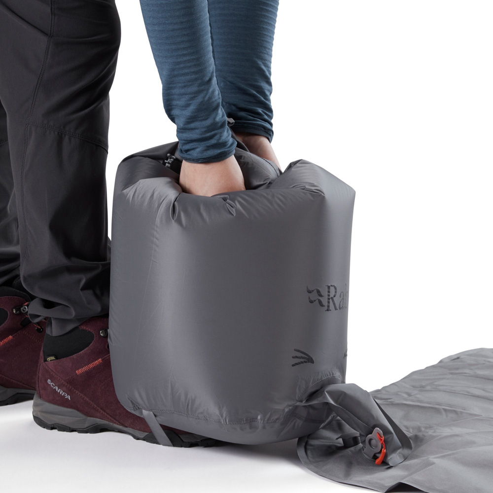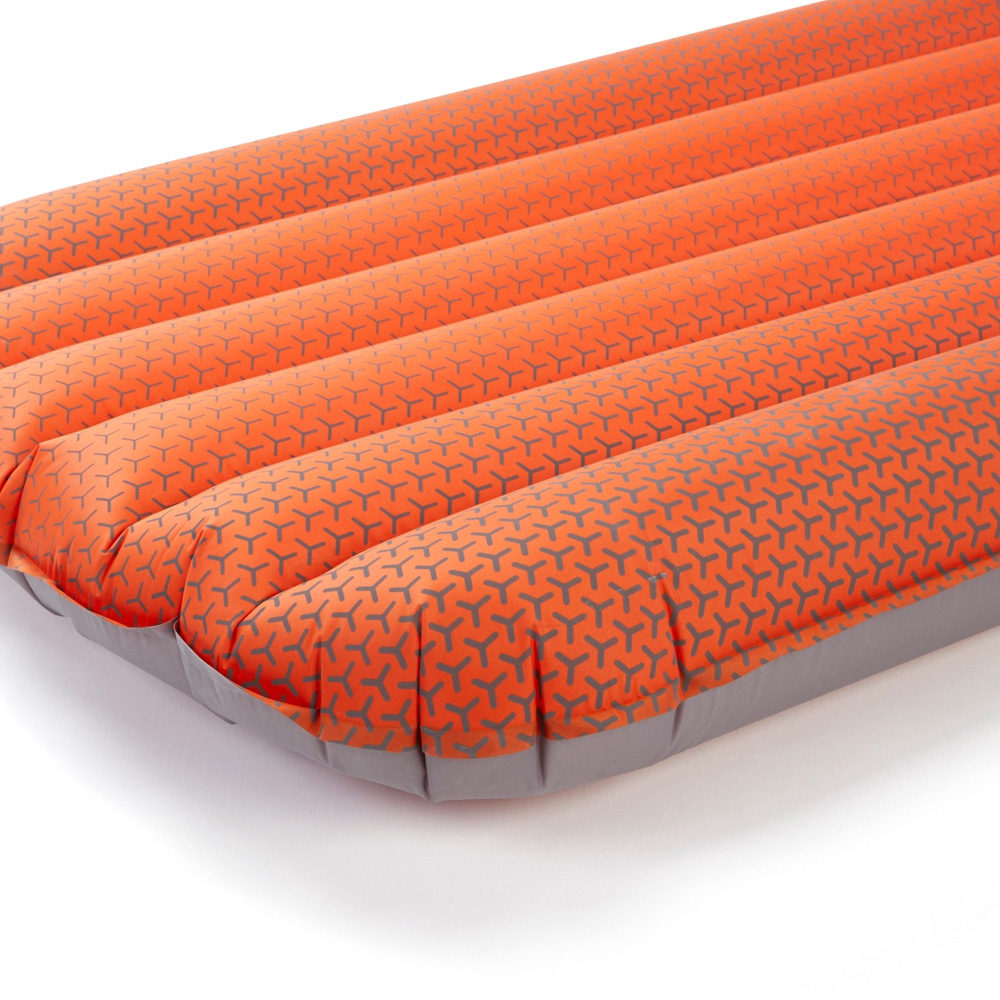Килимок має продумані деталі для максимального комфорту, включаючи збільшені зовнішні камери, щоб утримувати вас у центрі килимка, та нанесення для зменшення ковзання спальника. Матеріал приємний на дотик, а універсальна прямокутна форма гарантує, що ви зможете комфортно відпочити в будь-якому зручному положенні, якому ви надаєте перевагу. Низькопрофільний двосторонній клапан та зручний мішок-насос дозволяють швидко надути килимок, коли температура різко знизиться і ви будете готові лягати спати.